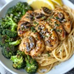Chicken Marsala With Pasta And Roasted Lemon Garlic Parmesan Broccoli