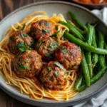 Eggplant Meatballs with Indian Green Beans and Spaghetti