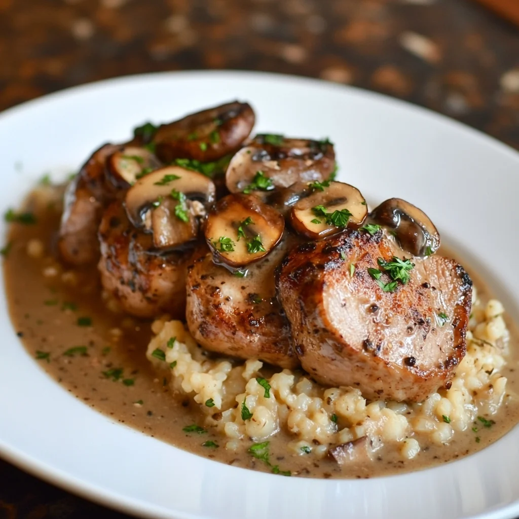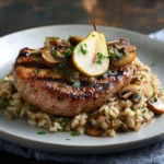 Grilled Pork Chop & Pear Chutney with Mushroom Rice Pilaf
