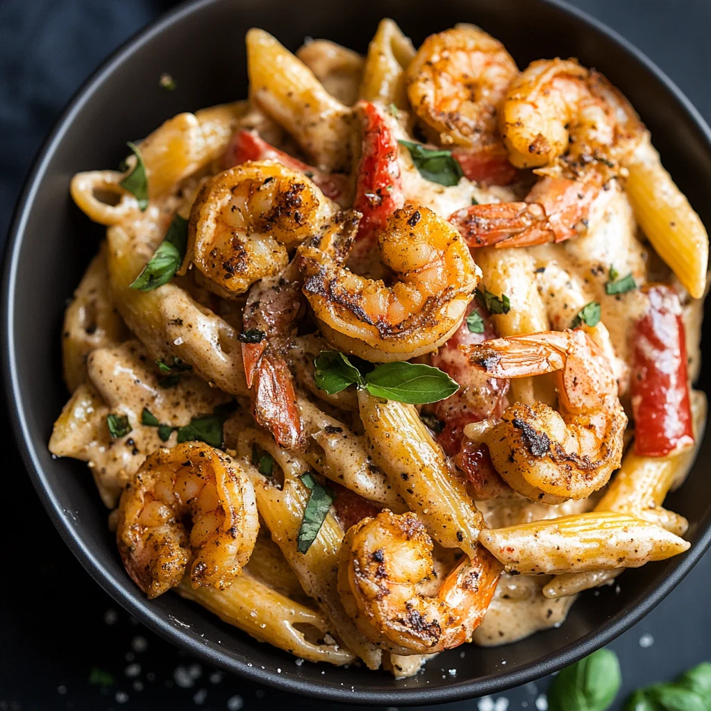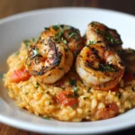 Blackened Shrimp & Cheddar-Pancetta Risotto with Tomato-Herb Sauce