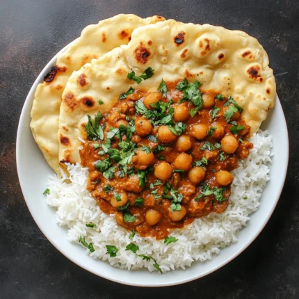The dish’s star, Chana Masala, features tender chickpeas simmered in a fragrant blend of spices such as cumin, coriander, and garam