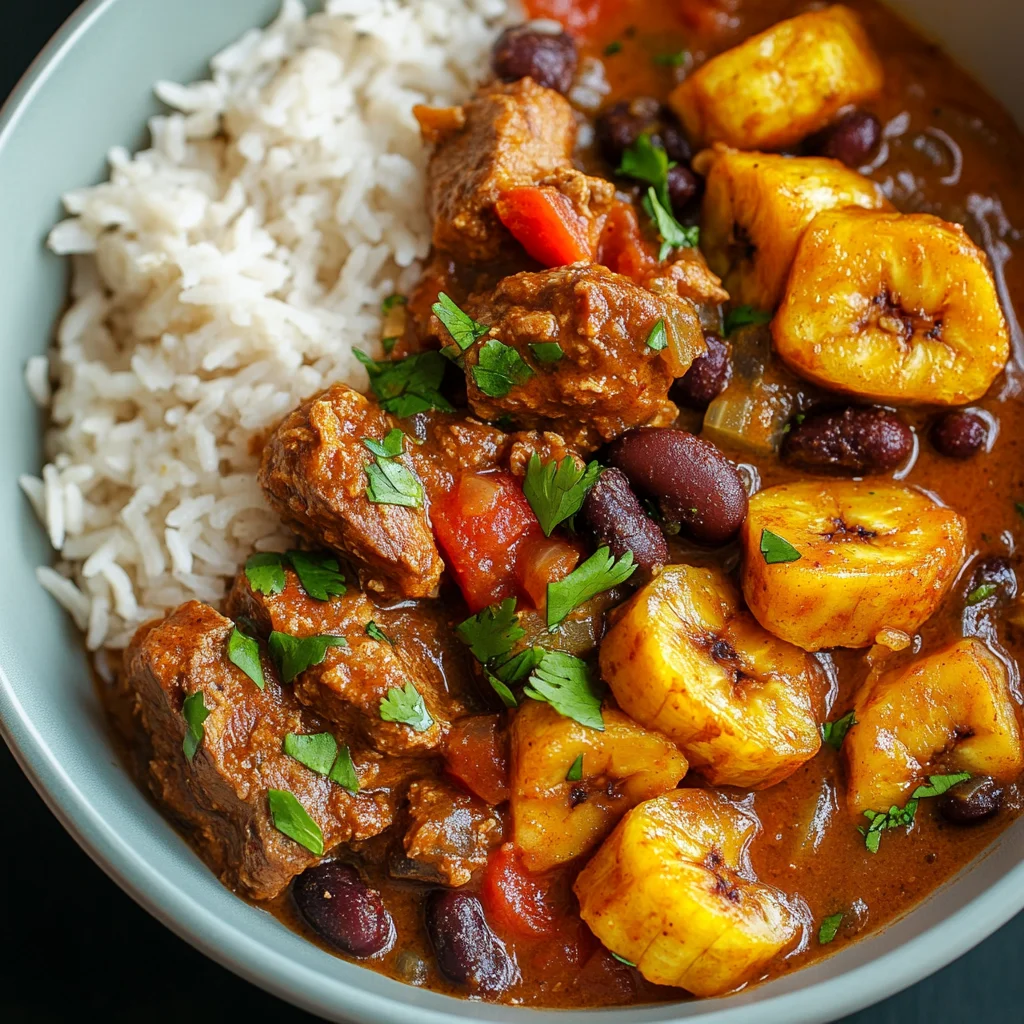 Caribbean Pork Stew with Red Beans & Rice and Sweet Plantains