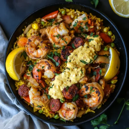 Mexican Chicken, Shrimp, & Chorizo Paella With Habanero Saffron Aioli