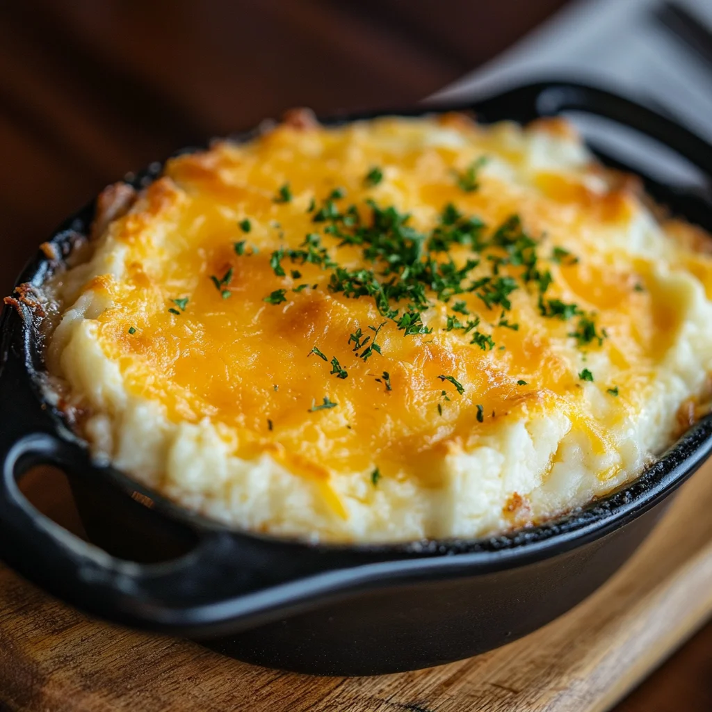 Classic Shepherd’s Pie is a hearty dish featuring a savory filling of ground meat and vegetables, topped with a layer of creamy mashed potatoes. Finished with a sprinkle of cheddar cheese that melts to perfection, this comforting meal is a delightful blend of flavors and textures, ideal for warming up on a chilly day.