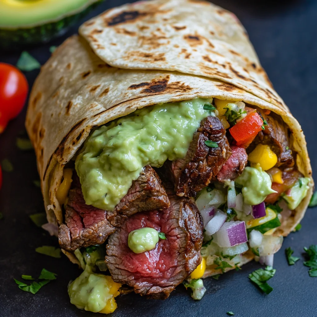 The Grass-Fed Ribeye Steak Burrito is a hearty and flavorful dish, packed with tender, juicy steak and a blend of fresh ingredients wrapped in a warm tortilla. Drizzled with creamy avocado sauce, this burrito delivers a rich, indulgent taste that elevates every bite and satisfies even the most discerning palate.