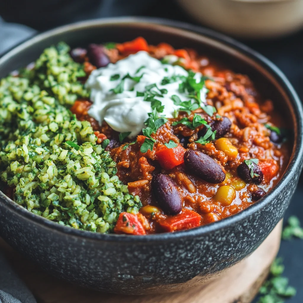 Middle Eastern Vegan Chili is a hearty and flavorful dish, featuring a blend of spices, legumes, and vegetables, enriched with creamy tahini for a delightful twist. Served alongside vibrant green sabzi rice, this meal offers a nutritious and satisfying experience, combining the warmth of chili with the freshness of herbs.