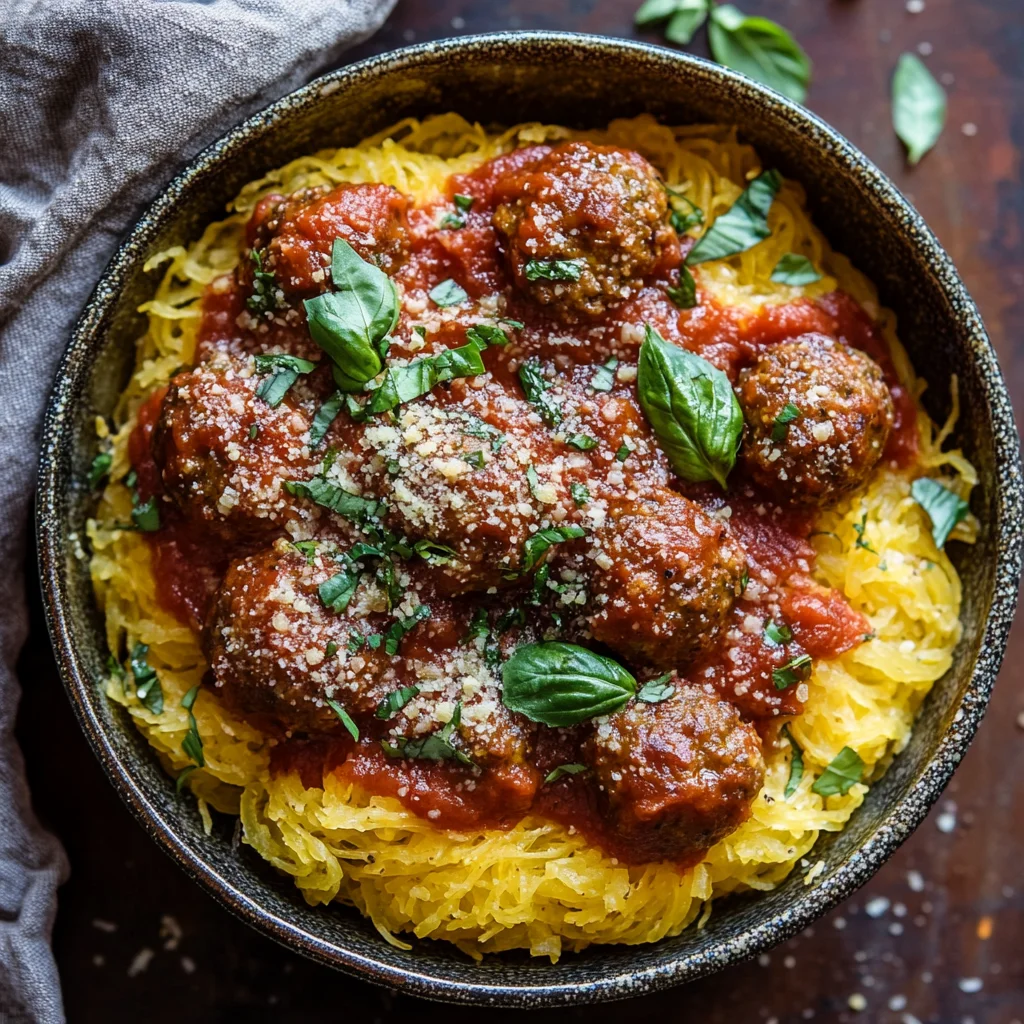 Spaghetti Squash with Beef Meatballs & Smoky Tomato Sauce