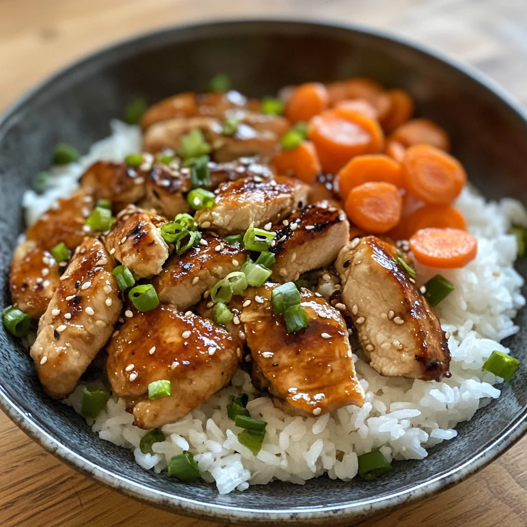 Teriyaki Chicken Served On White Rice And Asian Carrots