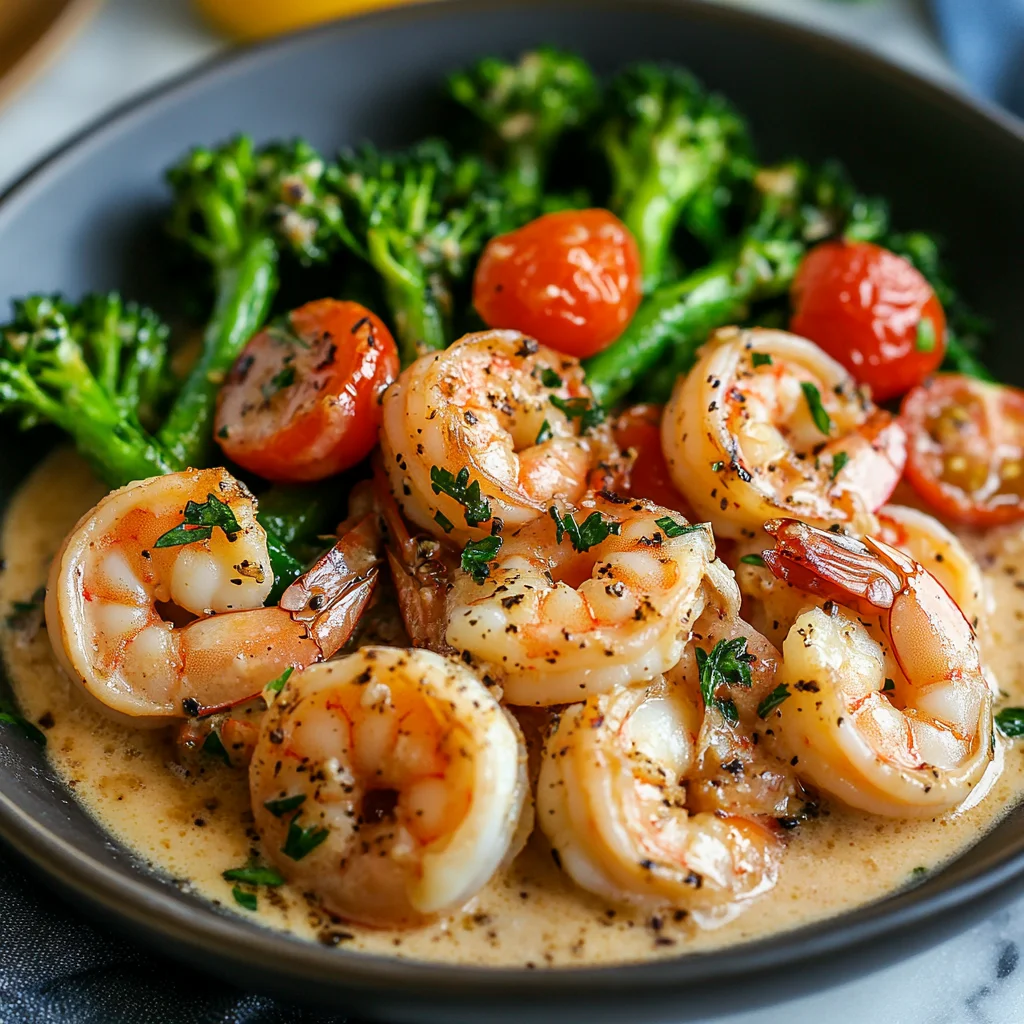 Tuscan Butter Shrimp with Cherry Tomatoes and Broccolini is a delightful dish featuring succulent shrimp sautéed in a rich and creamy butter sauce, complemented by the vibrant flavors of fresh cherry tomatoes and tender broccolini. This meal perfectly balances protein and vegetables, creating a satisfying and nutritious dining experience.
