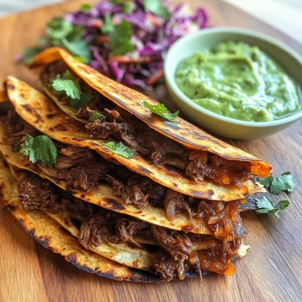 Beef Birria Quesadillas with Avocado Sauce & Cabbage Salad